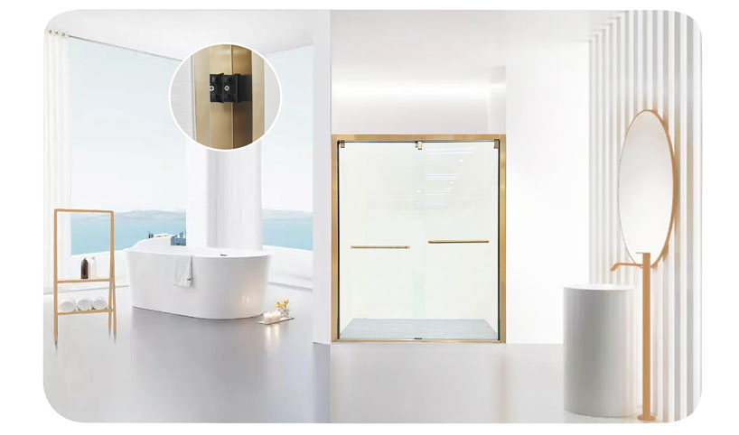 Shower Door H456-3, Material: stainless steel 304, Glass, double sliding door shower door, PVDCZ finish, silent roller design, wear-resistant, anti-collision, anti-jump, no rubber seal strip waterproof design, adjustable 58"-60" design, modular pre-drilling design, can achieve 20 minutes fast installation